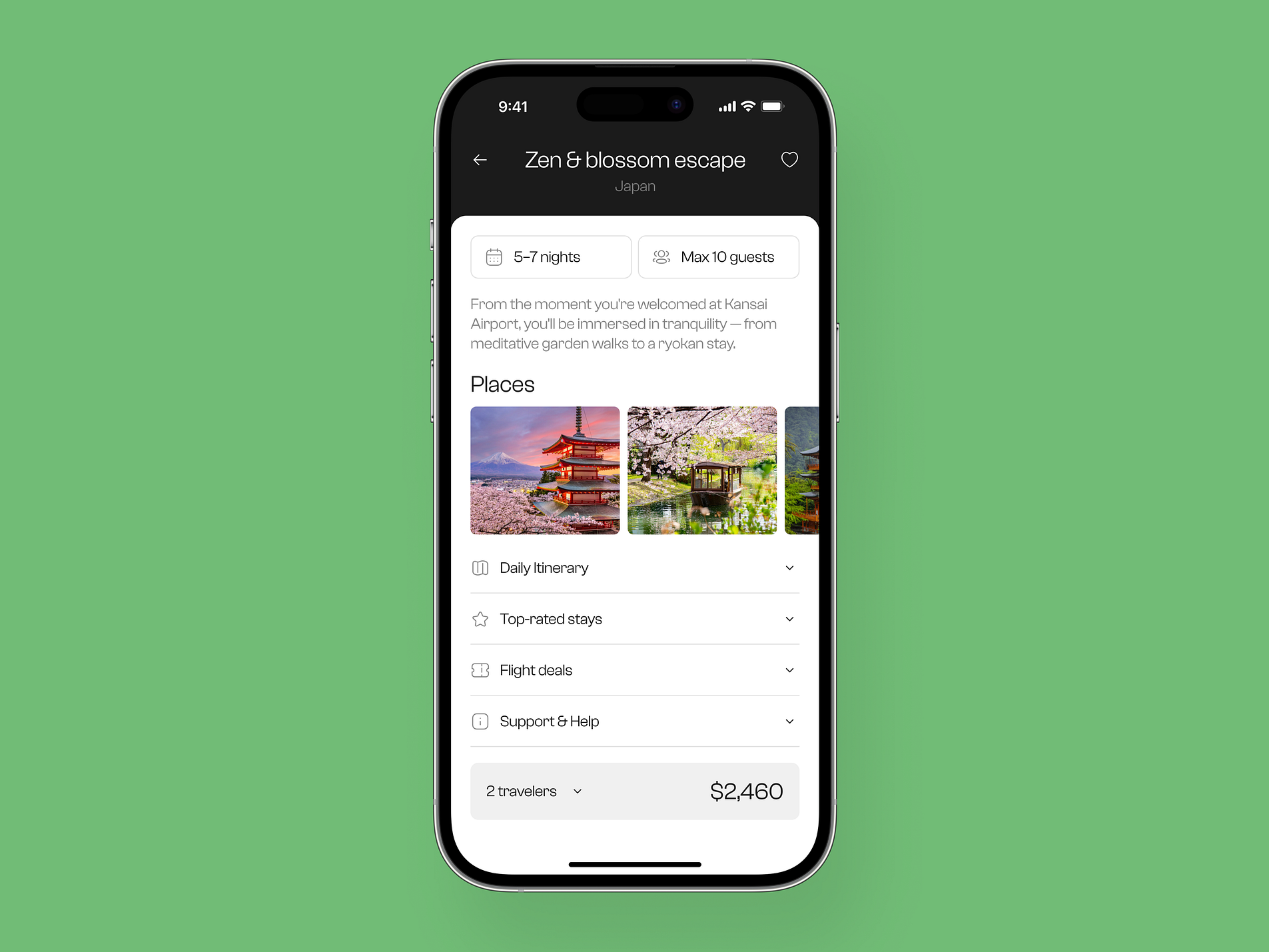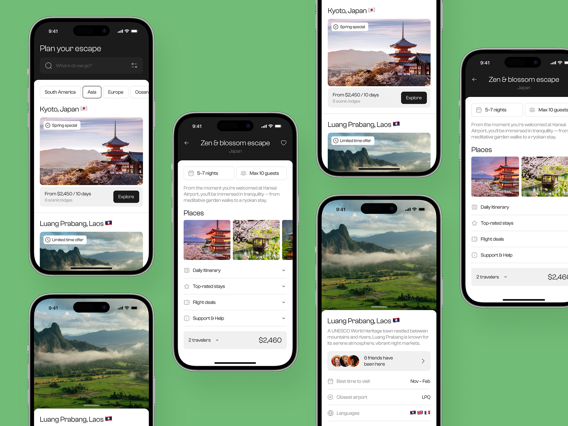 This mobile app was designed to help travelers discover and book unique experiences through a refined, marketplace-driven interface. The design focuses on exploration, with curated tours, detailed destination pages, and a smooth booking flow that makes planning effortless. A monochrome palette keeps the interface minimal while allowing vibrant travel photography to take center stage. Built with clarity and usability in mind, the app blends discovery and convenience into a seamless experience for modern travelers.