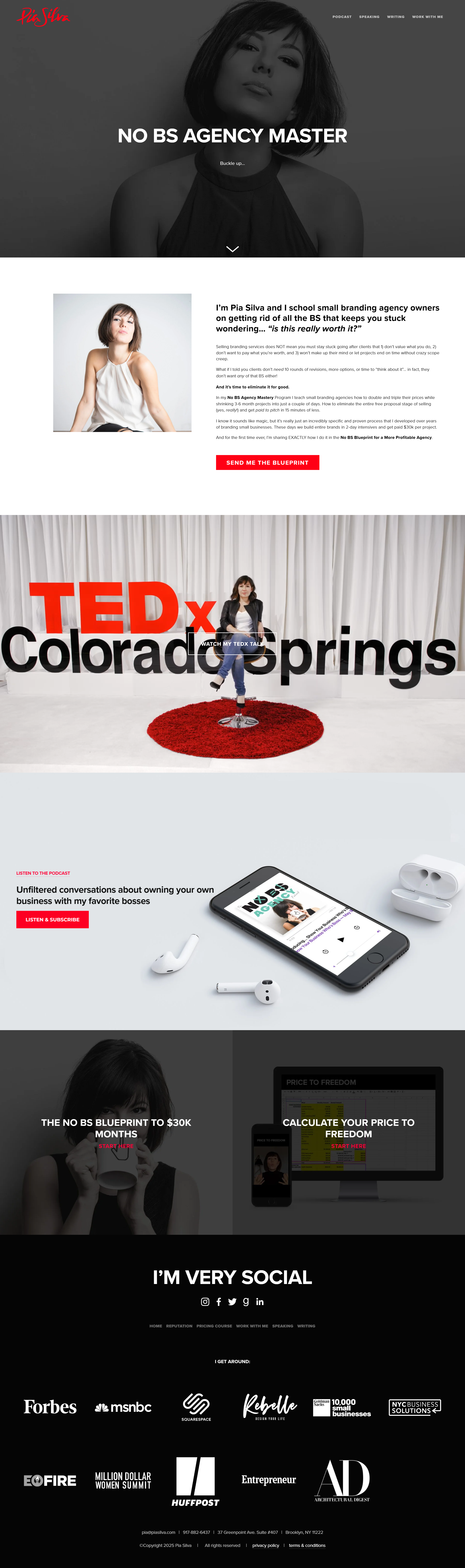 This website was designed to reflect Pia Silva’s bold, straightforward, and results-driven approach to helping small branding agencies grow profitably. The homepage emphasizes her confident voice through strong typography, engaging content hierarchy, and minimal distractions. Visual design elements support her “No BS” philosophy clean layouts, sharp contrast, and focused call-to-actions guide users through her programs and resources with clarity. Built on Squarespace, the site combines strategy and storytelling to create a professional yet authentic online presence that mirrors Pia’s expertise in branding and business transformation.
